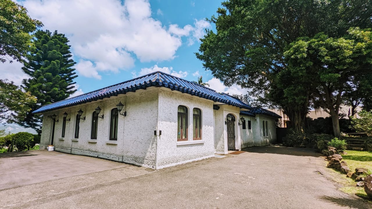 「林語堂故居」位於陽明山,興建於一九六六年,由「幽默大師」林語堂親自設計,本建築以中國四合院的架構模式,結合西班牙的設計取向,融合成現代感與古典美兼具的建築。藍色的琉璃瓦、白色的西班牙式螺旋廊柱、深紫色的圓角窗櫺嵌在白色的粉牆上,意境典雅精緻。